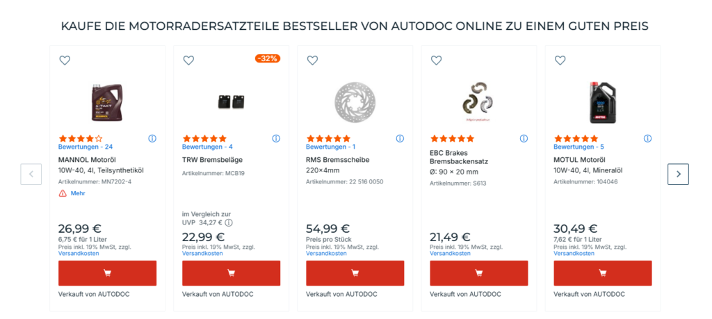 AUTODOC bleibt zudem stets am Puls der Automobilinnovation – von Ersatzteilen für Elektrofahrzeuge bis hin zu modernen Diagnosewerkzeugen. So finden Kunden nicht nur klassische Komponenten, sondern auch Produkte für die Fahrzeuge der Zukunft.